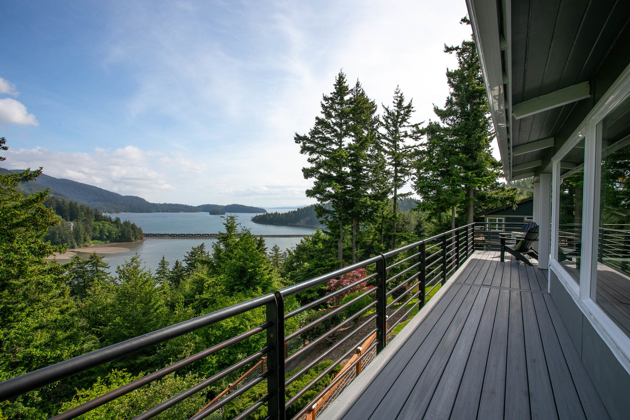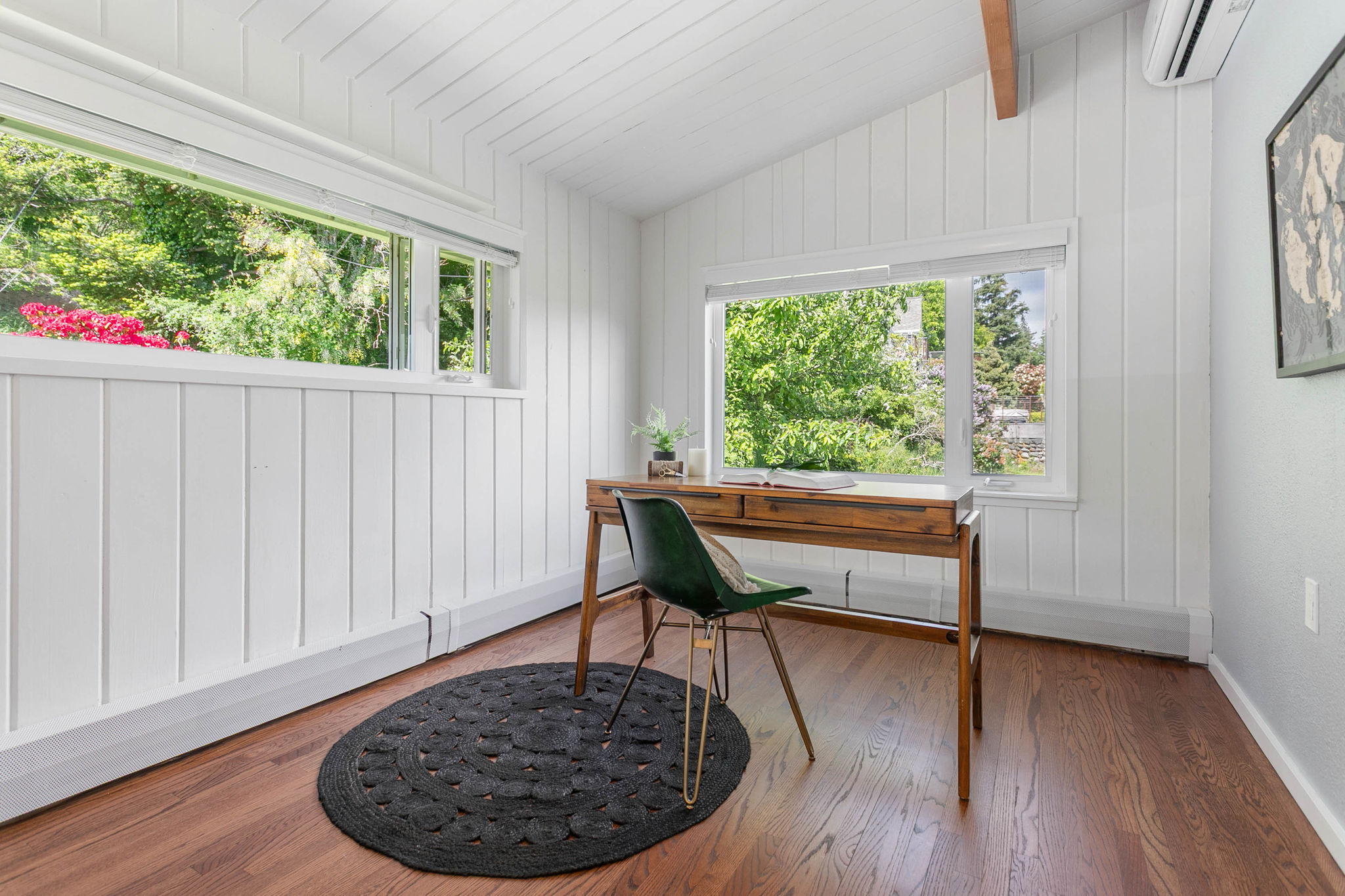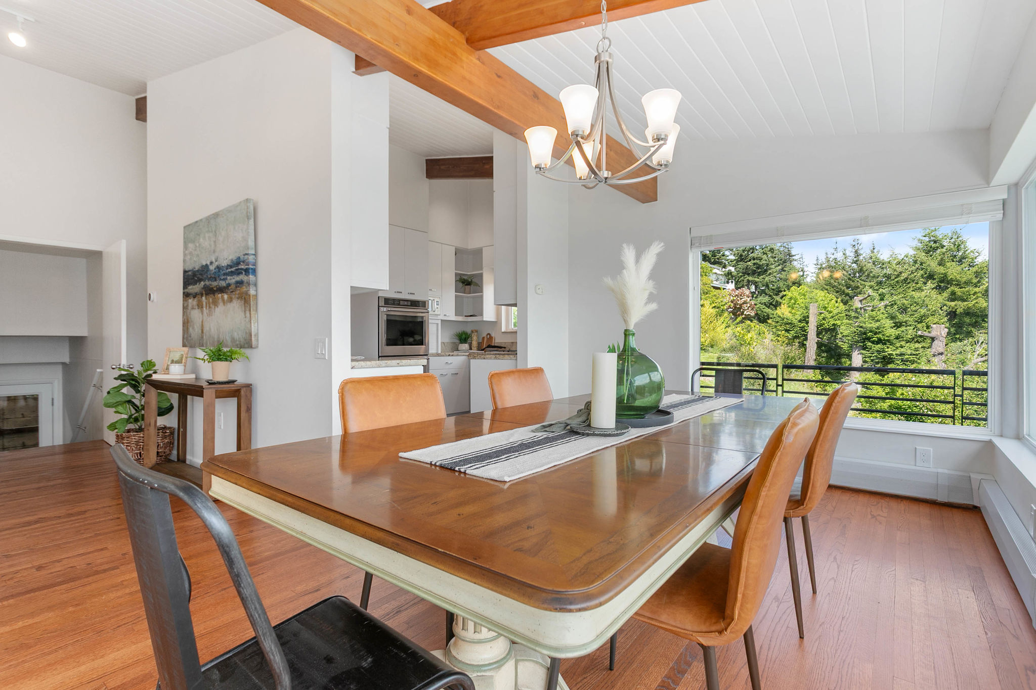 Situated on the edge of Bellingham’s coveted Edgemoor neighborhood, this timeless mid-century tri-level offers sweeping, south facing views over Chuckanut Bay, to Governors Point, and all the way to Anacortes. Classic hardwood floors, walls of windows, and exposed beams set a tone of understated elegance throughout. Updates include mini-split heating/cooling, roof, appliances, water heater, paint, flooring, expansive deck, patio, irrigation and fully fenced turf dog run. With three traditional bedrooms plus two additional flexible spaces, there’s room to adapt the layout to your needs—alongside a generous quarter-acre lot and included conceptual plans for future expansion. A rare view property with charm, comfort, and remarkable potential.