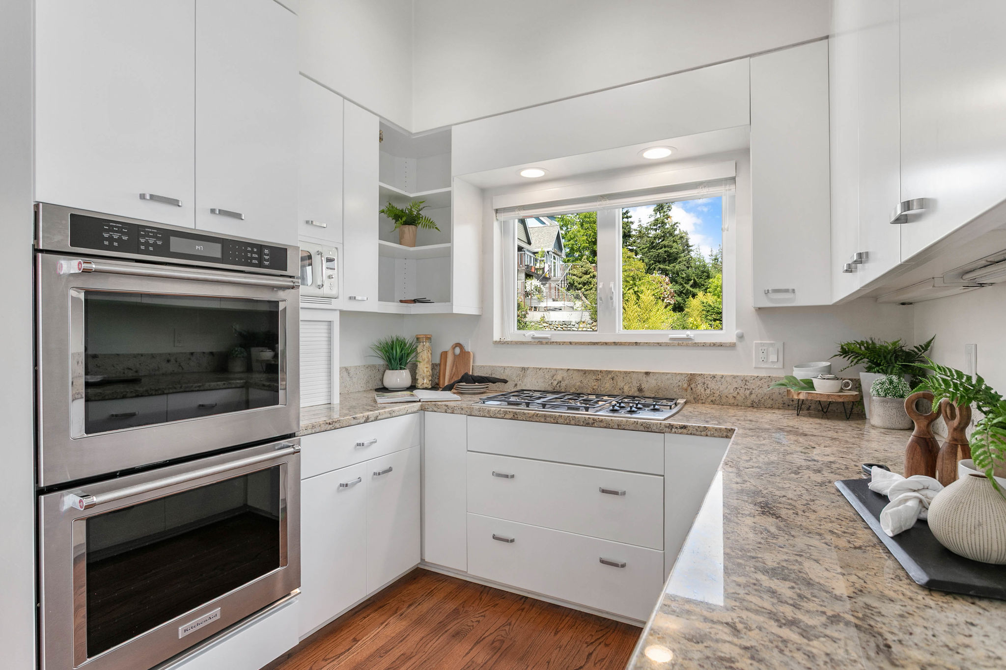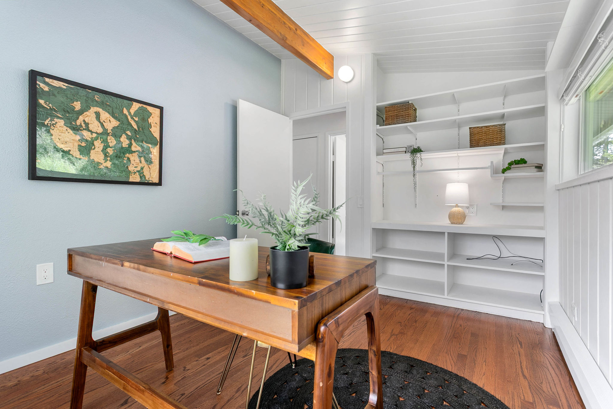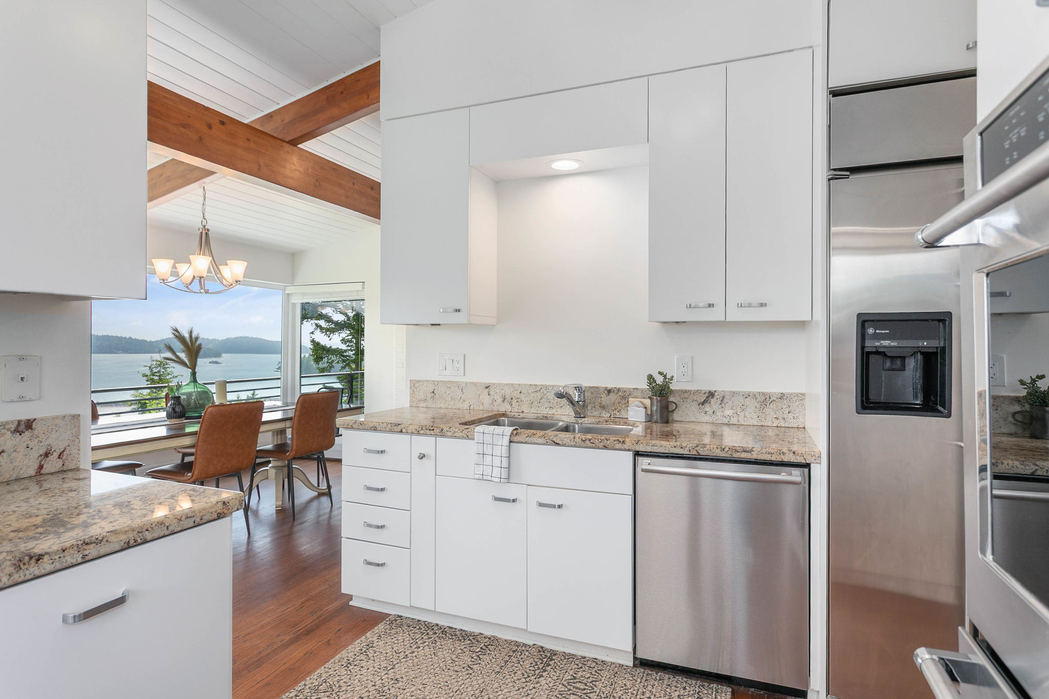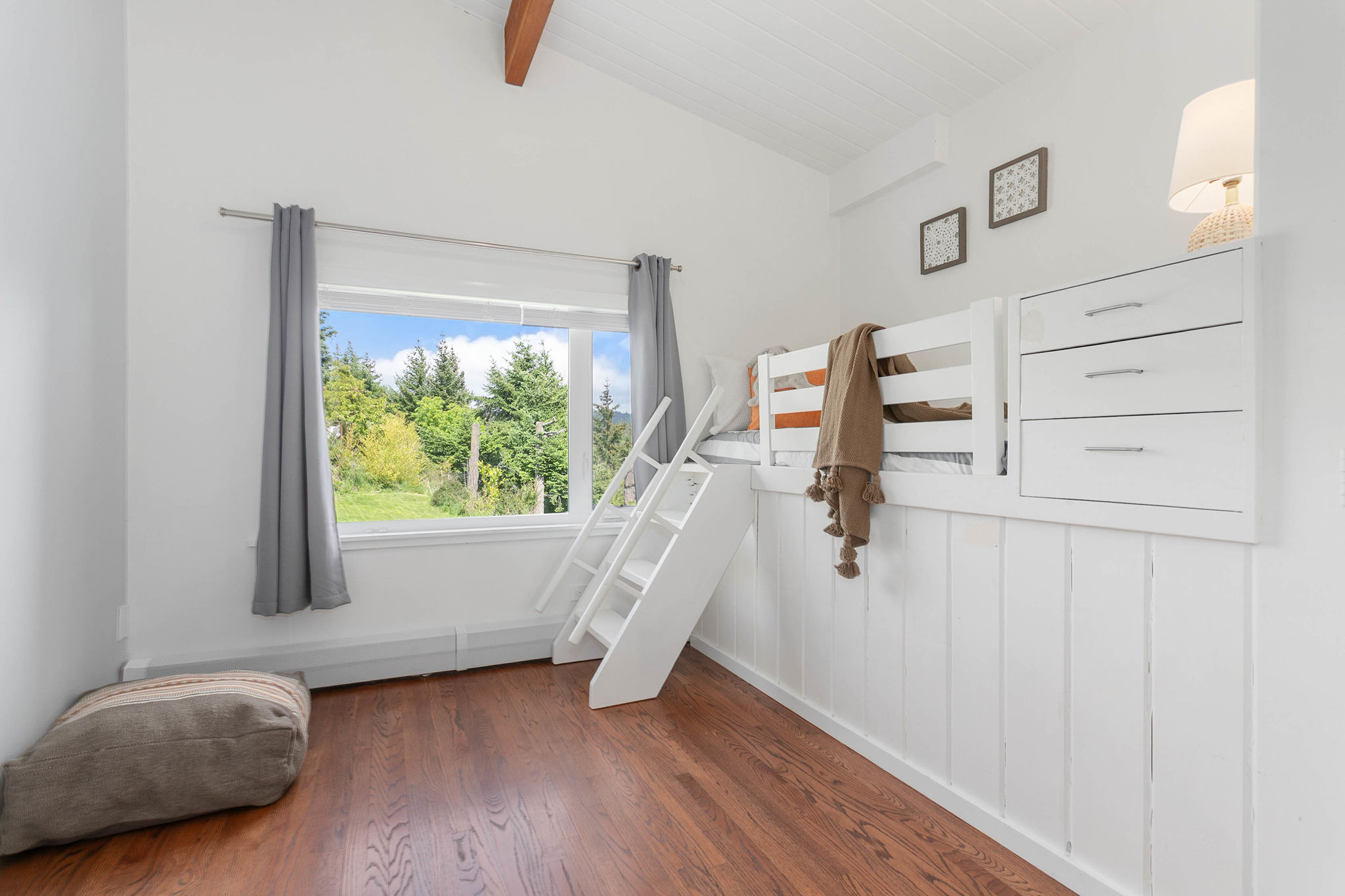 Situated on the edge of Bellingham’s coveted Edgemoor neighborhood, this timeless mid-century tri-level offers sweeping, south facing views over Chuckanut Bay, to Governors Point, and all the way to Anacortes. Classic hardwood floors, walls of windows, and exposed beams set a tone of understated elegance throughout. Updates include mini-split heating/cooling, roof, appliances, water heater, paint, flooring, expansive deck, patio, irrigation and fully fenced turf dog run. With three traditional bedrooms plus two additional flexible spaces, there’s room to adapt the layout to your needs—alongside a generous quarter-acre lot and included conceptual plans for future expansion. A rare view property with charm, comfort, and remarkable potential.